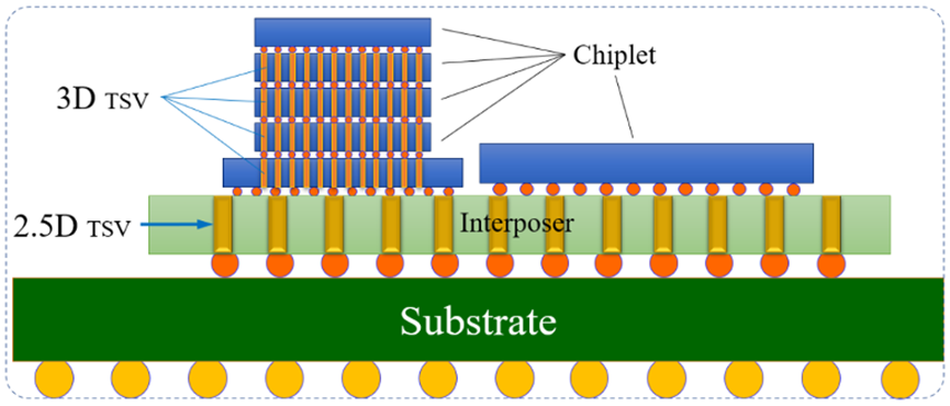中介層可以由硅、玻璃或其他材質(zhì)構(gòu)成,其內(nèi)部可以通過(guò)硅通孔(TSV)、玻璃通孔(TGV)等技術(shù)實(shí)現(xiàn)電氣連接。這些通孔就像是一條條隱藏在中介層內(nèi)部的“高速公路”,使得信號(hào)能夠高速、穩(wěn)定地在不同芯片之間傳輸。與傳統(tǒng)的SoC(System on Chip)系統(tǒng)級(jí)芯片相比,2.5D封裝技術(shù)具有顯著的成本優(yōu)勢(shì)、更高的產(chǎn)量、更低的技術(shù)突破成本和更好的可靠性。